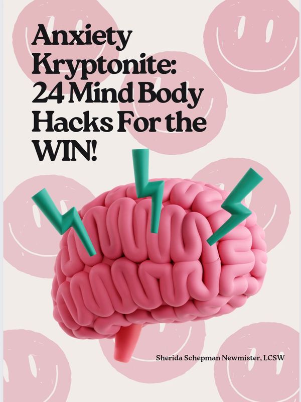 "Anxiety Kryptonite: 24 Mind Body Hacks for the WIN", Is a quick guide ebook that describes 24 separate skills to decrease your anxiety! It describes how to use 4 skills, in 6 different categories, so there's for sure something that will fit for everyone!
